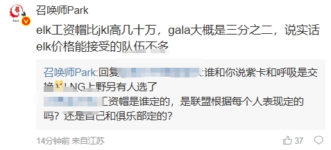没S冠工资都这么高??知情人士爆料:elk工资帽比jkl高几十万 gala大概是三分之二 24直播网 2025年11月12日 23:37 阅读模式 电竞日报11月12日播报讯 LPL爆料人更博爆料:elk工资帽比jkl高几十万,gala大概是三分之二,说实话elk价格能接受的队伍不多。
